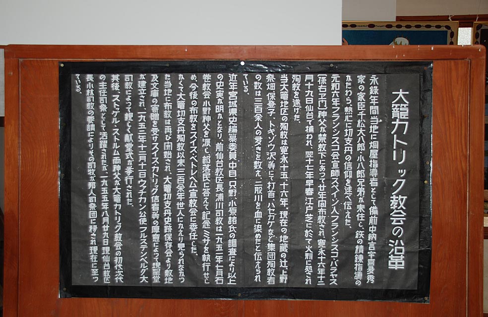 聖堂の前には、次のような大籠のキリシタン史が書かれています。