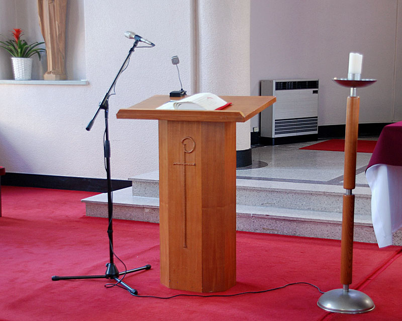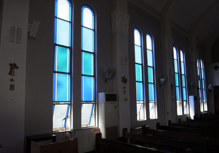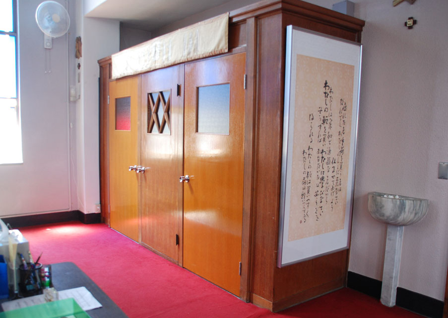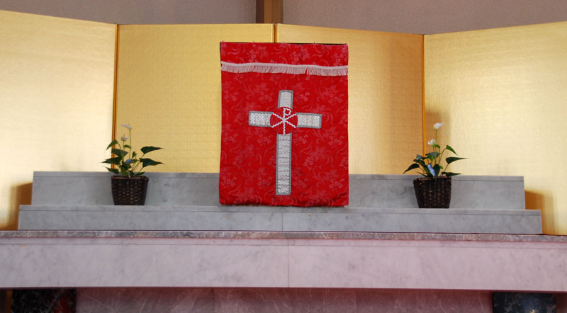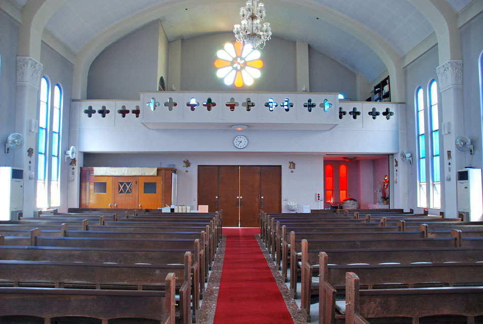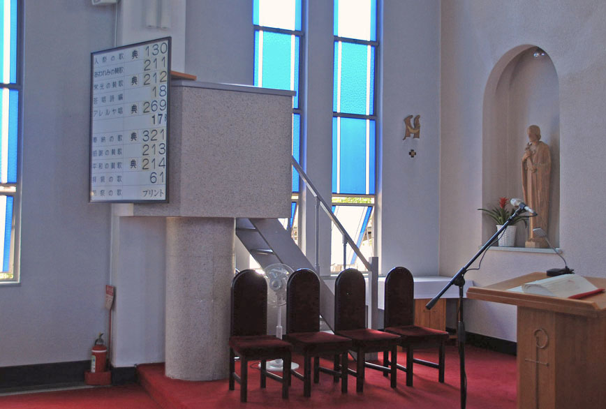 1954(昭和29)年末ごろには、信徒数の増加によって仮聖堂では収容不能となり、翌年12月に新聖堂が竣工され、田口司教の司式で献堂式が盛大に行われました。
