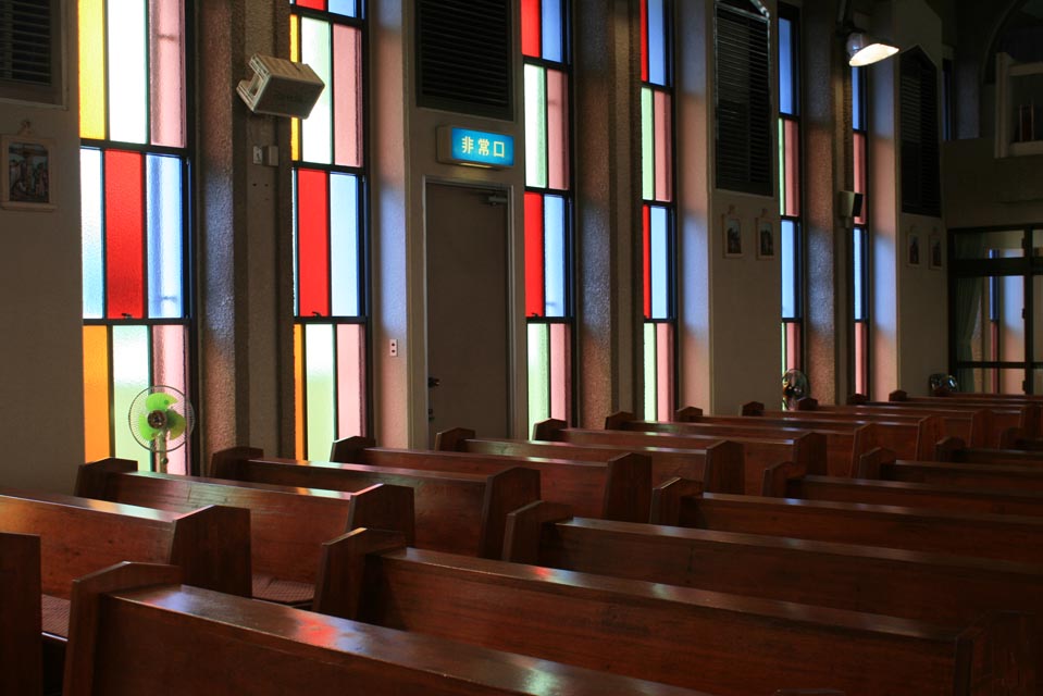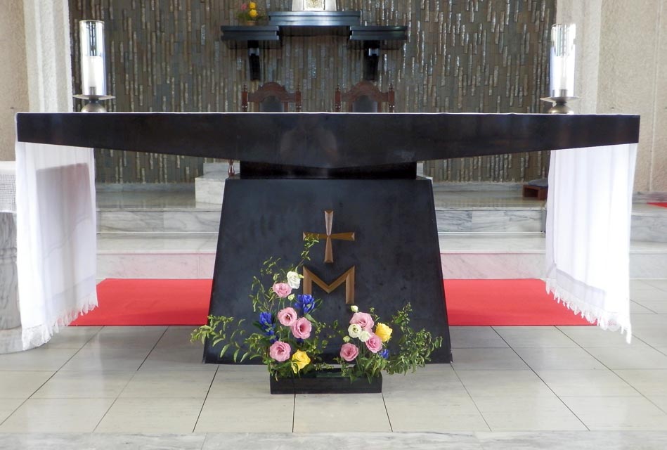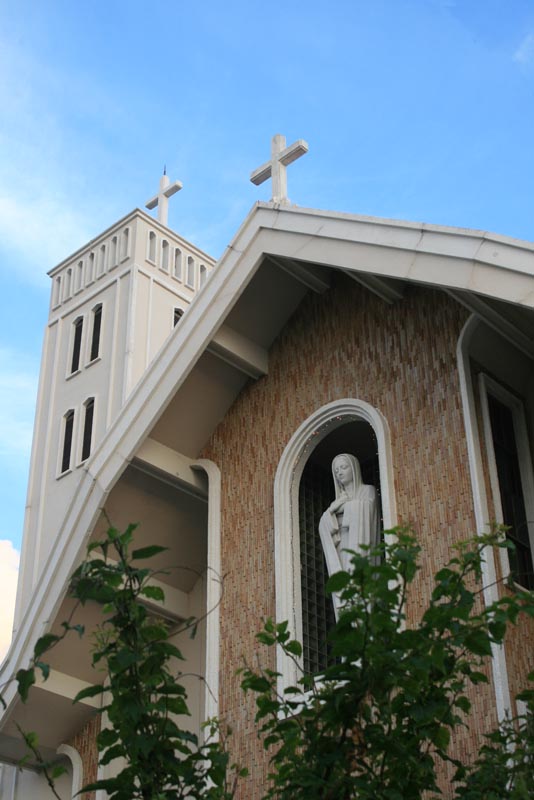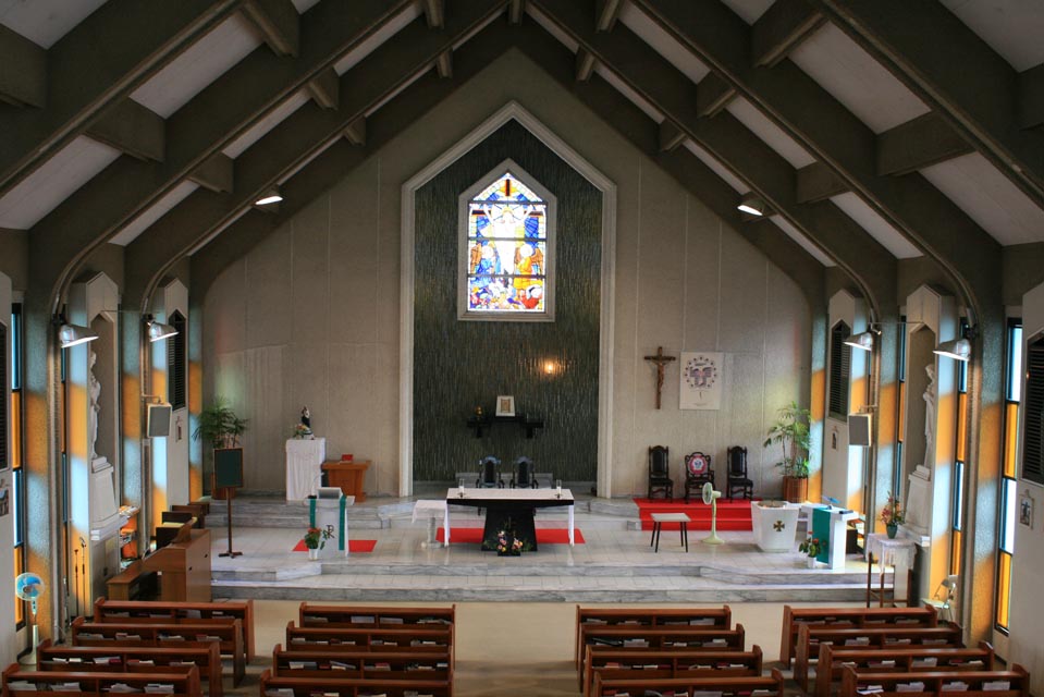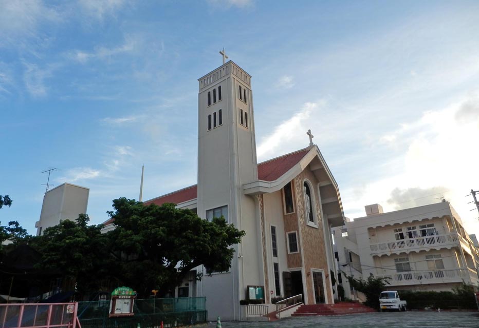 1951(昭和26)年12月には、コンクリートの2階建ての聖堂が建てられ、那覇教区のシンボルである「聖母の汚れなきみ心」にささげられました。
