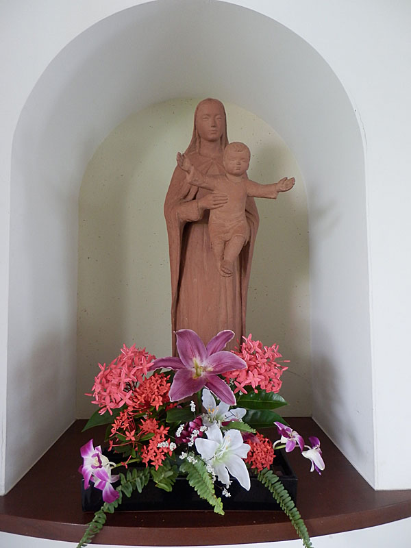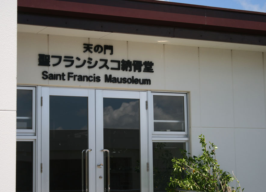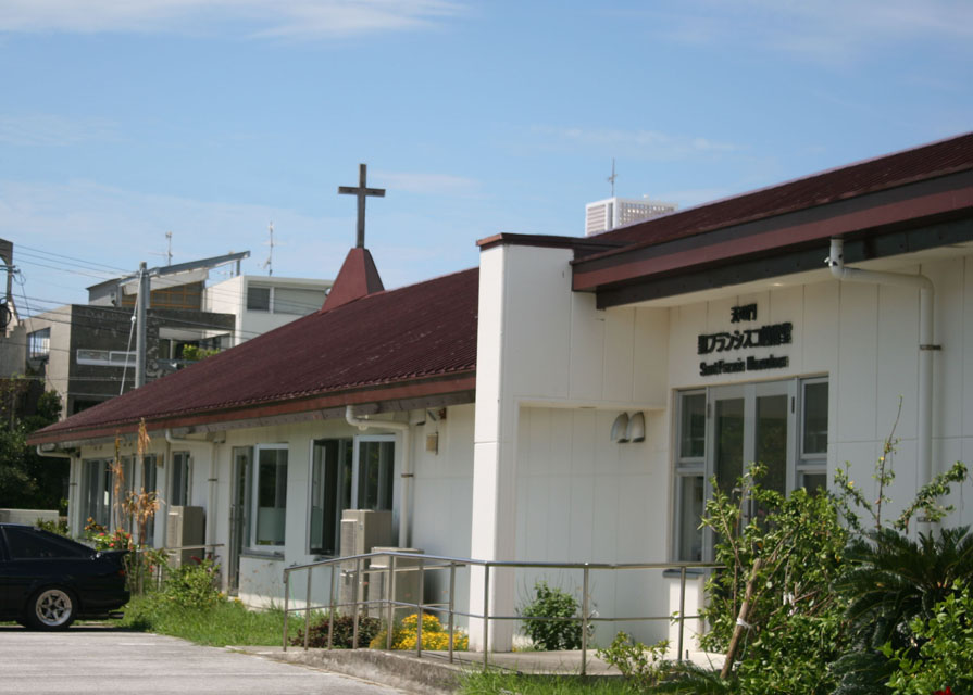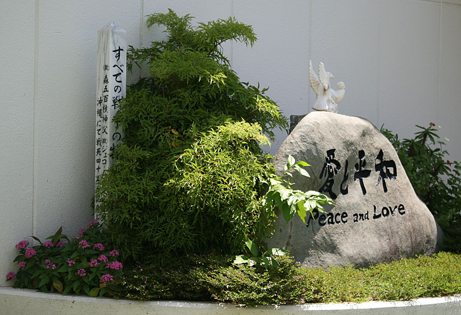 小禄教会には、沖縄戦で戦没された日米2人の司祭、森神父(宮崎県出身)とジェローム神父(カプチン会)の平和記念碑が建てられています。