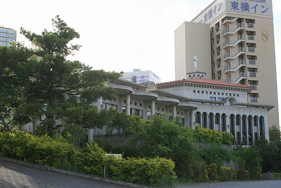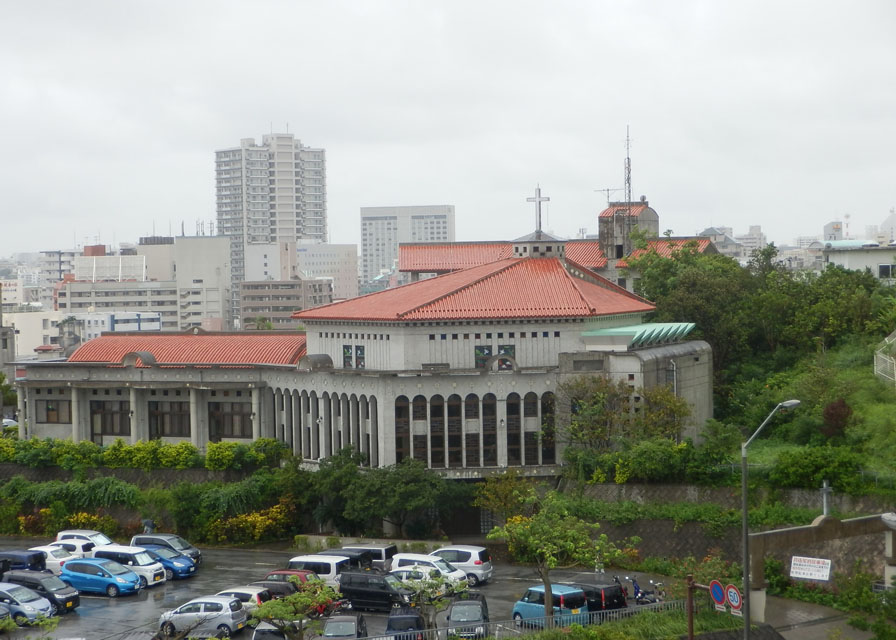 那覇新都心エリアに、沖縄の伝統的な赤瓦をイメージした屋根のカトリック安里教会があります。