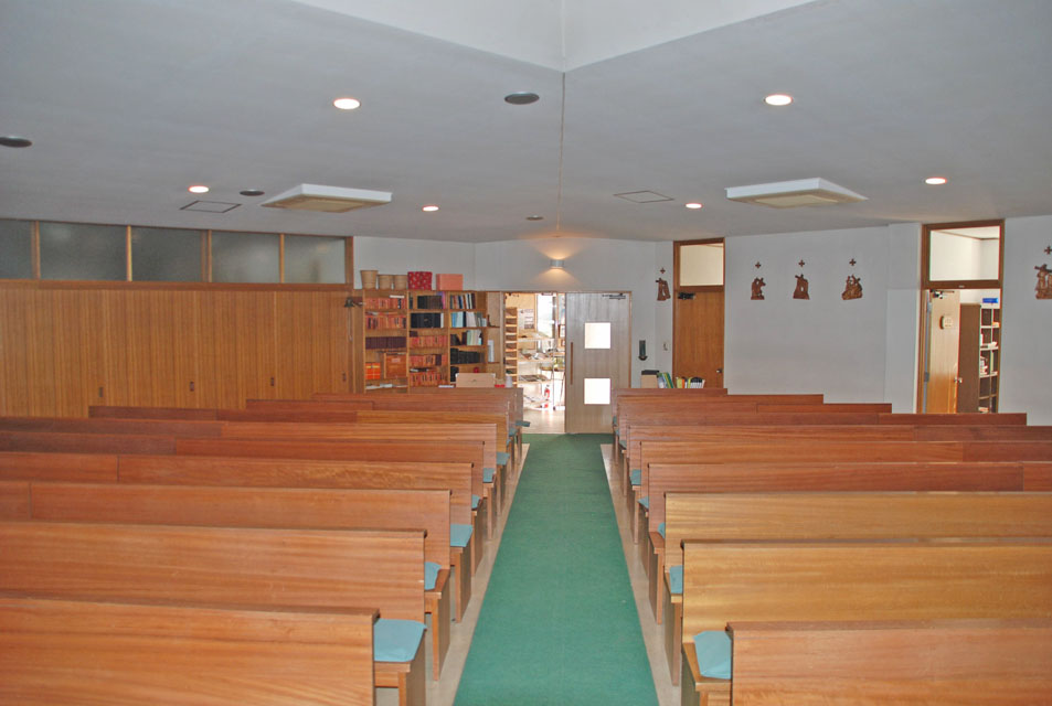 この地域の人口は増え続けて、現在この教会は住宅街の真ん中になっています。