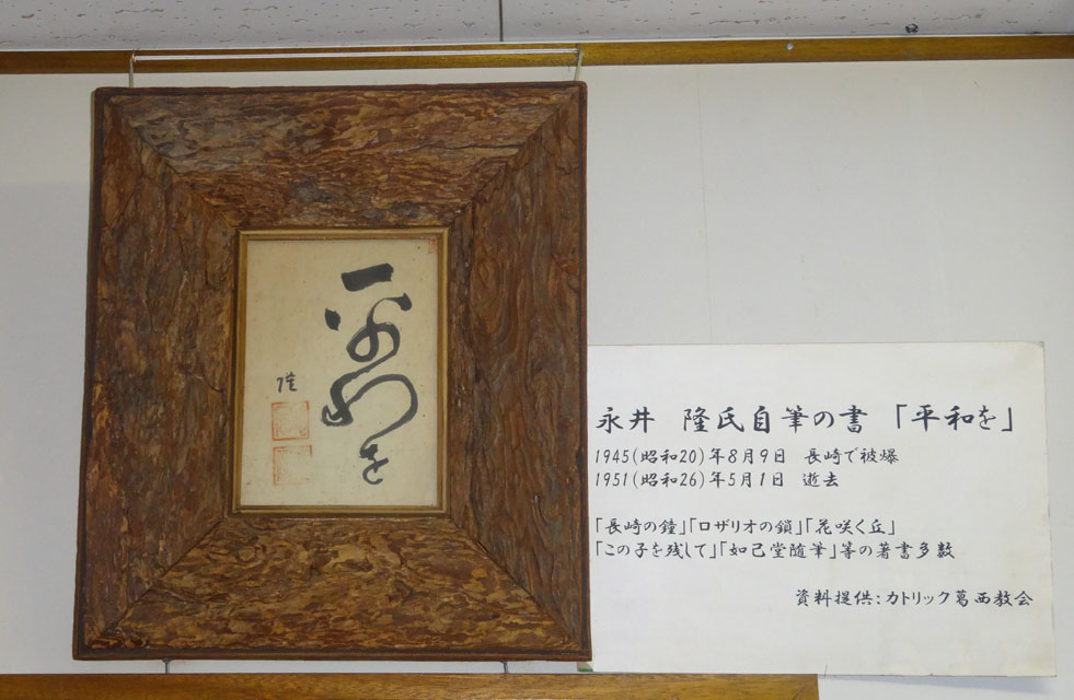 ![]() 永井隆氏自筆の書「平和を」 |