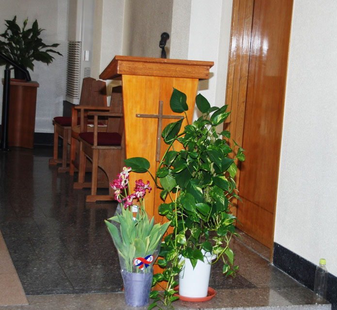 ![]() 聖堂内 福者ユスタキオ神父像 |