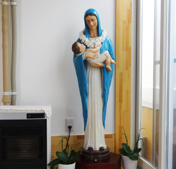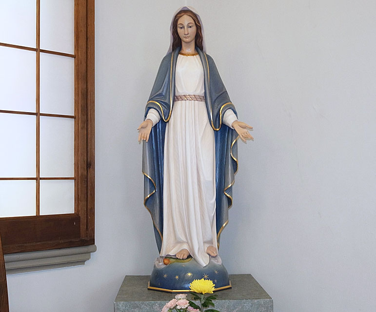 この年熊谷正信氏より、木製のイタリア製の「無原罪のマリア」像が寄贈されました。