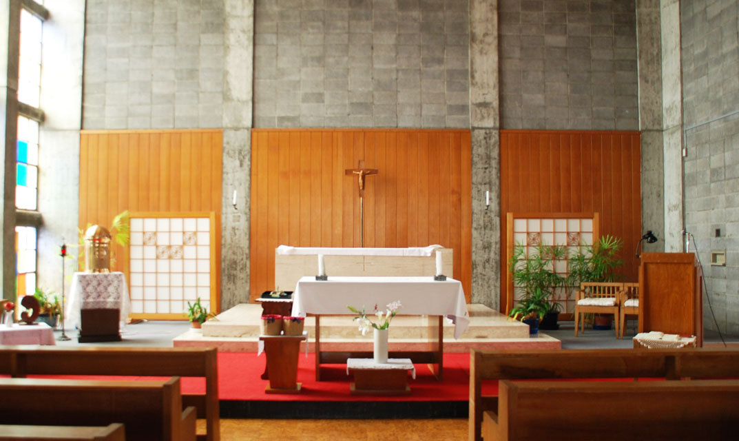 2005(平成17)年10月、平、小名浜、湯本、吻来の4教会を統合し、平教会に「カトリックいわき教会」を建設し、新たな活動を開始しました。