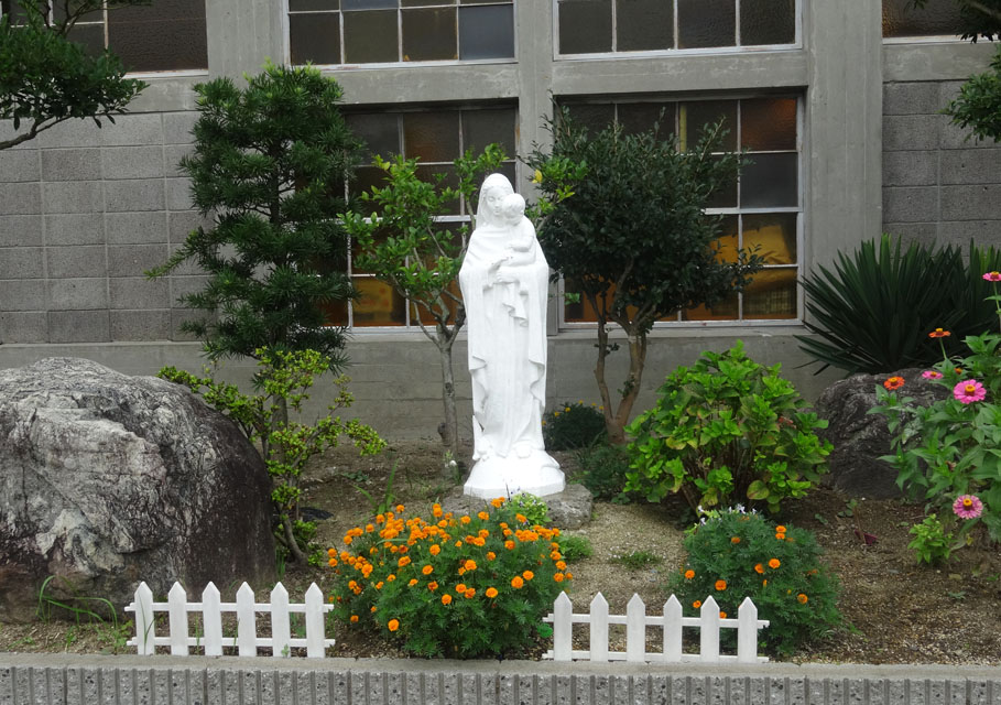 2011(平成23)年3月11日におこった東日本大震災の際、小名浜教会は港に近かったため、津波が近くまで押し寄せてきましたが、教会の前庭にあるマリア像の前で止まったそうです。