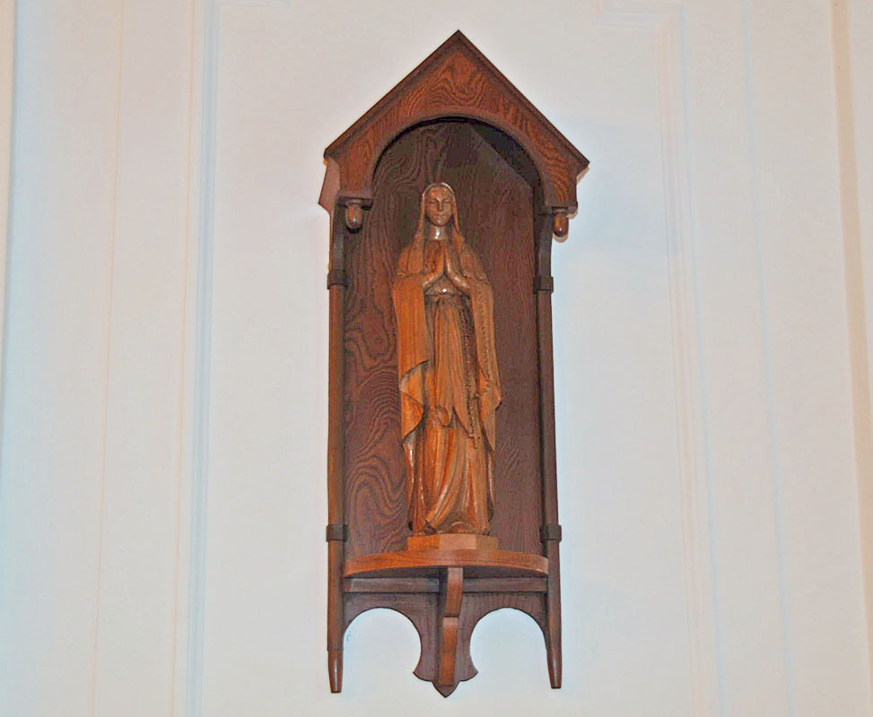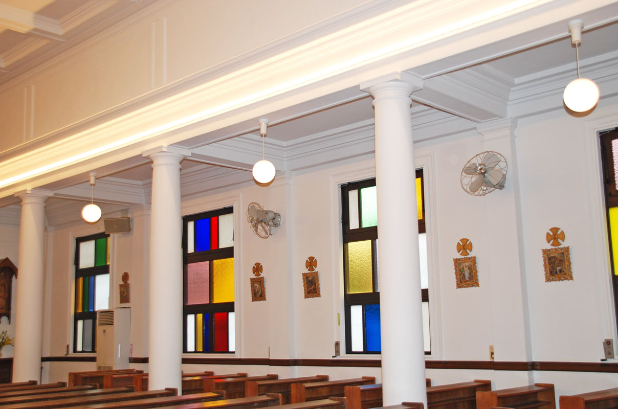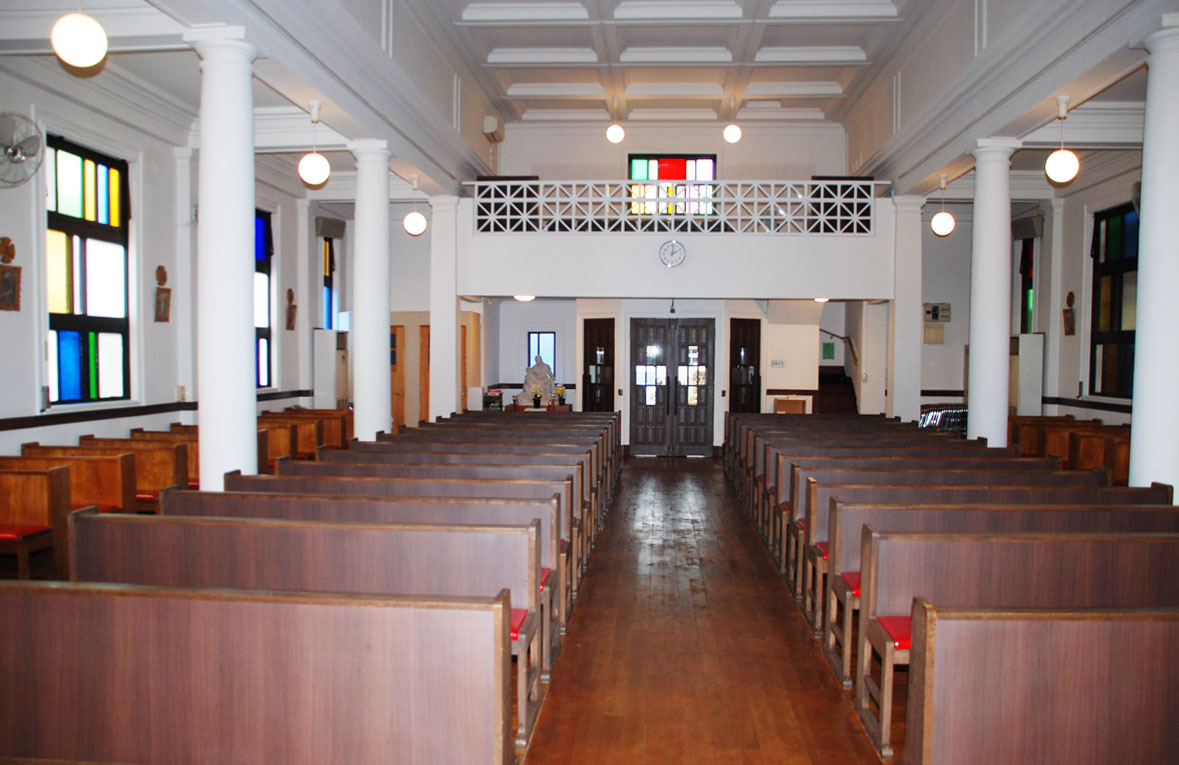 1951(昭和26)年、終戦直後の物資・食糧が不足する中、初代主任司祭平田忠雄神父を中心に多くの信者が力を併せ、念願の聖堂(現在の聖堂)を築き上げ、7月8日に土井大司教により献堂式が行われました。
