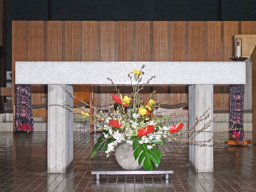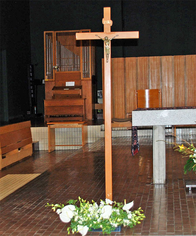 1973(昭和48)年12月、隣家からの類焼で、聖堂の後方の屋根が燃え、パイプオルガンが使用できなくなりましたが、翌年4月には修復工事が始まり、あわせて、第二バチカン公会議後の典礼にあわせた聖堂内陣に改修されました。
