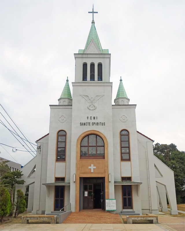 1951(昭和26)年6月に現在の聖堂が着工され、翌年1月に第三代福岡教区長ドミニコ深堀仙右衛門司教によって祝別献堂されました。