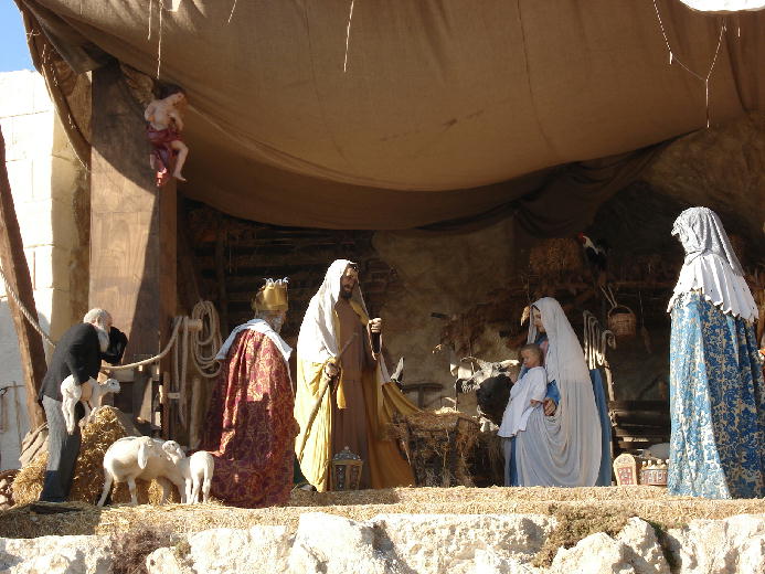 良くできています。その規模は、やはり世界のバチカン! という感じです。馬小屋のマリア、ヨセフと三人の博士などは、等身大よりちょっと大きいサイズ、馬小屋の周囲のパレスチナの人々は、等身大です。そのまま家の中に入って、ちょっとお茶でも……と言うことができそうなほどリアル感がありました。案内の男性にたずねてみましたら、通常は1月いっぱいまで飾っているのだそうです。修道院に帰ってから、イタリア人のシスターにたずねましたら、昔は、「主の奉献」の祝日までが降誕祭だったとかで、そのなごりで、今も「主の奉献」の祝日まで馬小屋が飾られているのだそうです。その後サン・ピエトロには行っていないのですが、今はもう取り去られているはずです。